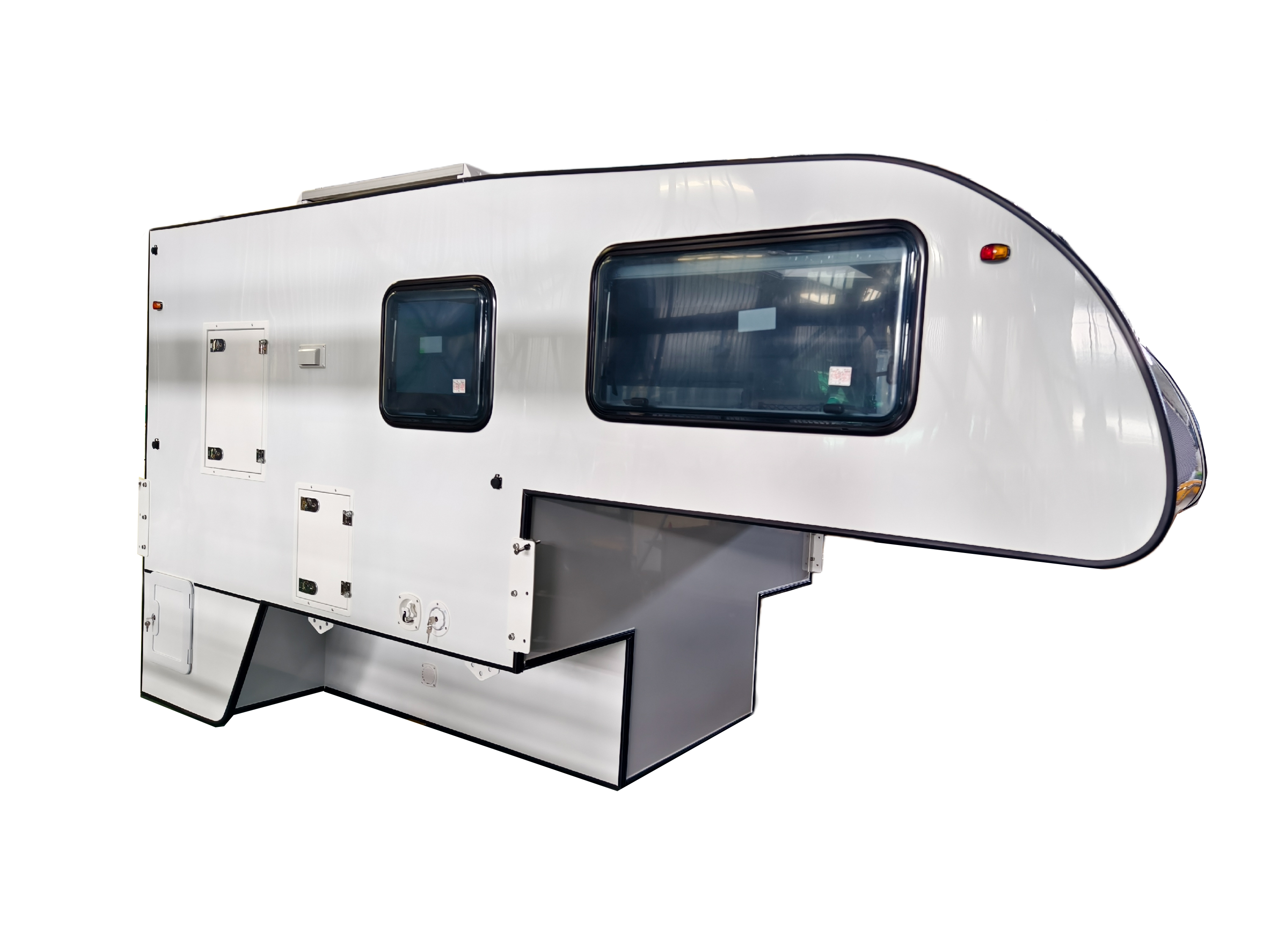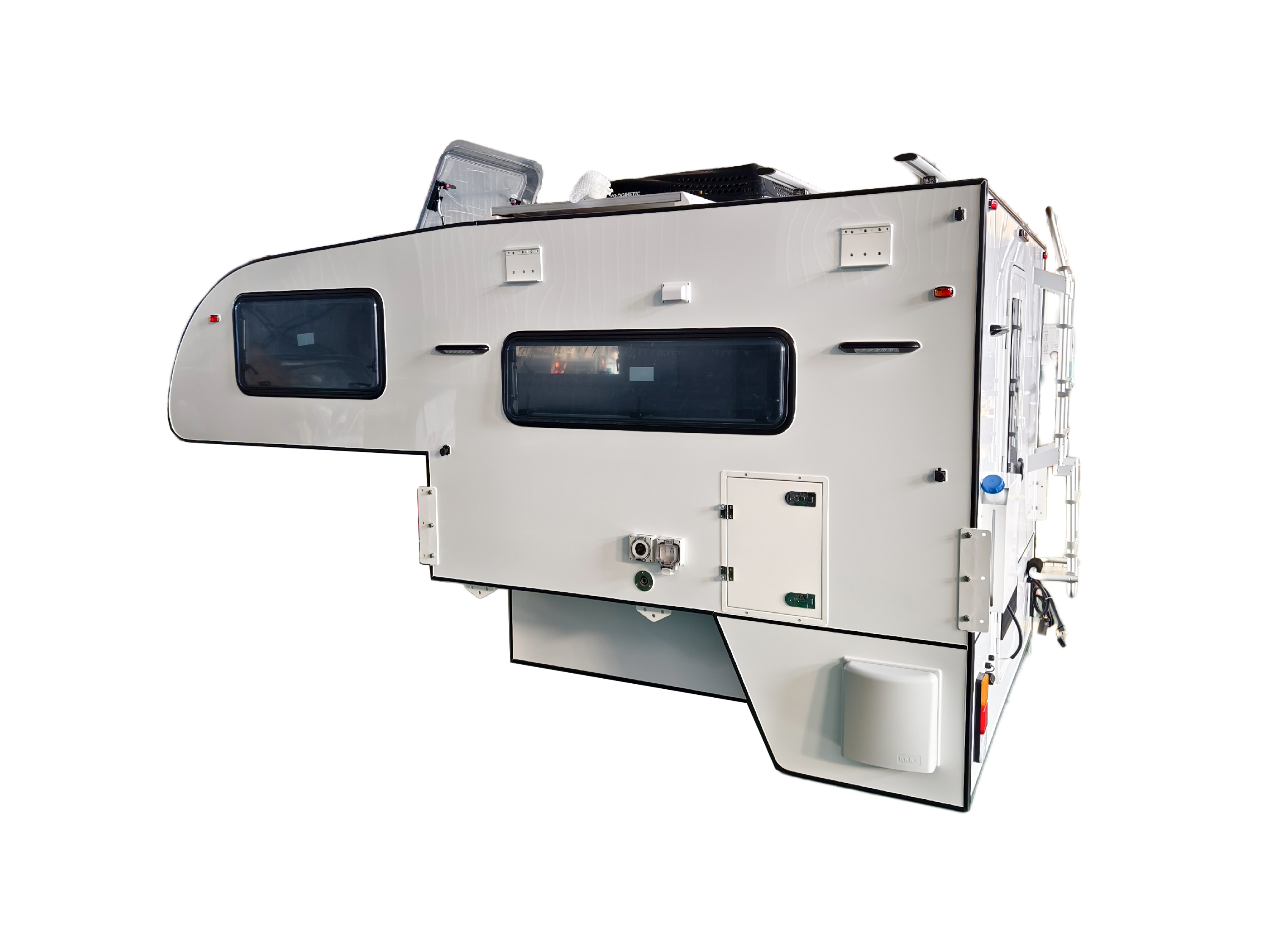 Allroad's compact hardshell truck camper is designed for durability and functionality. Its aluminum alloy structure ensures strength and lightweight performance.