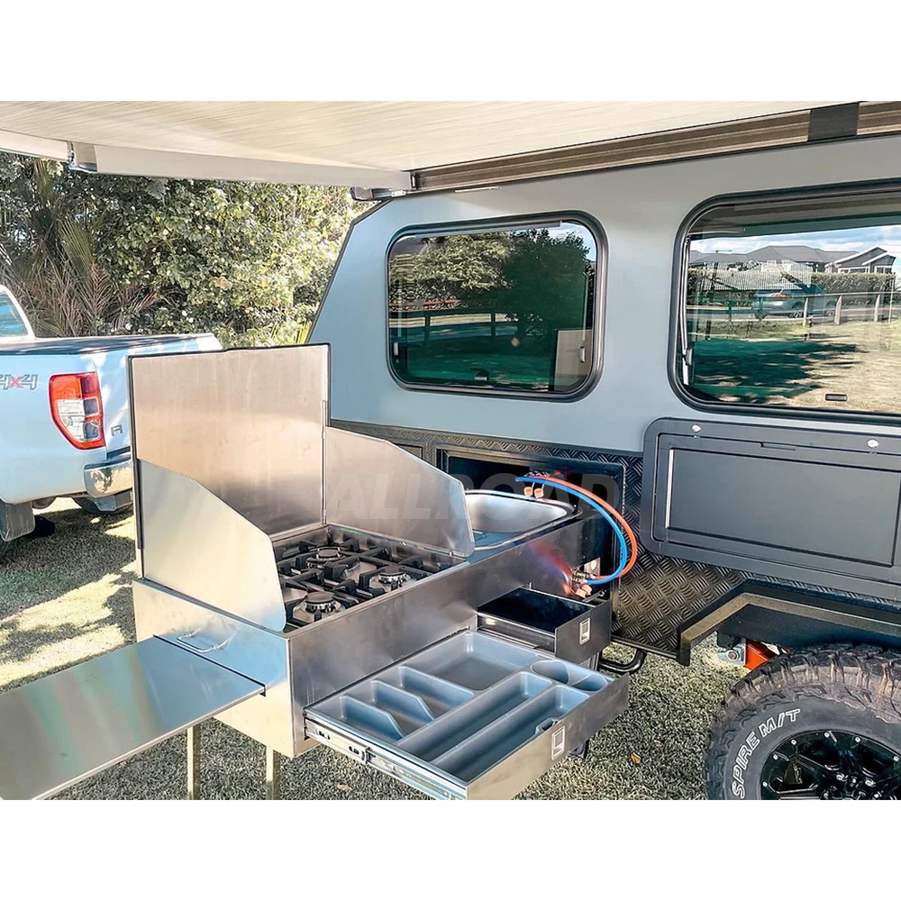 | Kökssystem | Skjut ut matklassade 304 rostfria kökshällar med diskho och 4* spisbrännare Spishäll med S/S diskho och varm- och kallvattenkran |