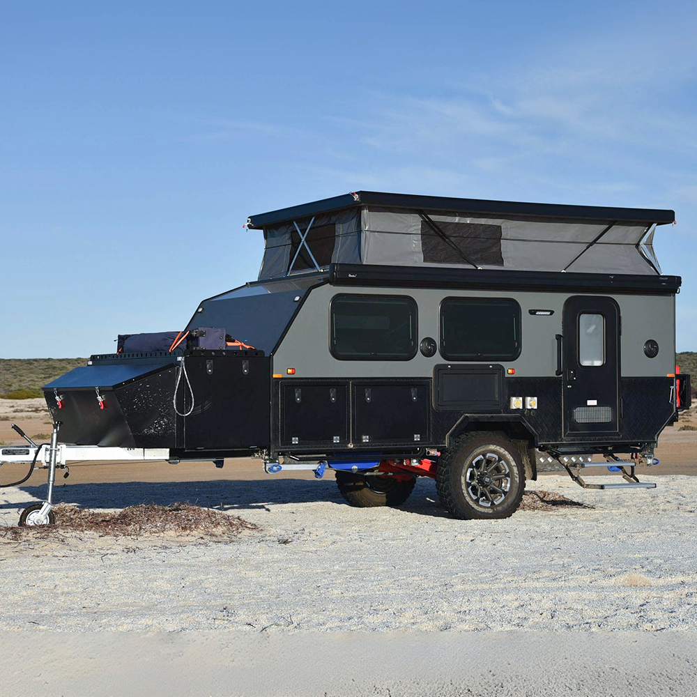 Ge dig ut på oförglömliga terrängeskapader med vår toppmoderna terrängvagn med en anmärkningsvärd poptopp. Designad för att omdefiniera äventyrsresor, kombinerar denna trailer sömlöst robust hållbarhet med lyxig komfort, vilket gör den till det perfekta valet för både spänningssökare och naturentusiaster.